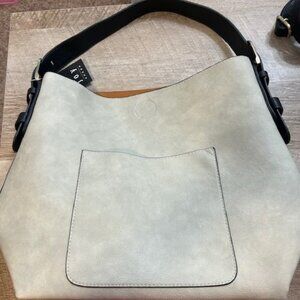 NWT Susan Joy Classic Hobo Bag with Extra Crossbody Stone Vegan Leather