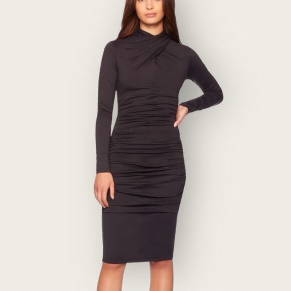NWT | Susana Mónaco | Crisscross Mock Long Sleeve Dress | Onyx | Small