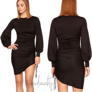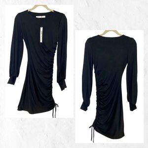 New Susana Monaco Balloon Long Sleeve with Gathered Side Ruching and Tie Dress in Black.
