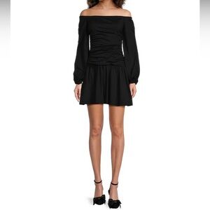 NWT Susana Monaco Black Off- The-Shoulder Long Sleeve Ruched Mini Poet Dress