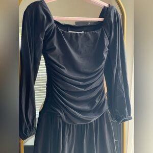 NWT Susana Monaco Black Off-The-Shoulder Neck Long Sleeve Ruched Mini Dress
