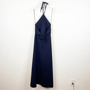 NWT Susana Monaco Cut Out Waist High Low Midi Halter Dress L Blue