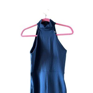 NWT Susana Monaco Dark Teal Blue Mock Neck Legging Jumpsuit Size Small