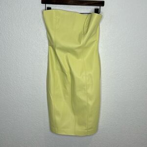 NWT Susana Monaco Faux Leather Strapless Mini Dress Pale Lemon Large