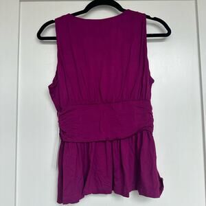 NWT Susana Monaco Gathered Deep V-Neck Sleeveless Top in Magenta, Size Medium