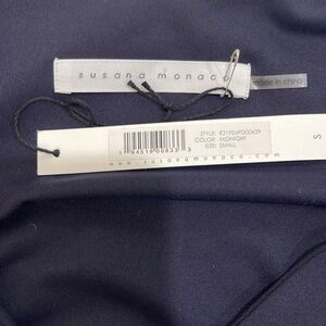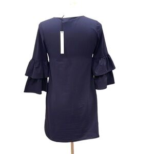 NWT Susana Monaco Navy Stretch V Neck 3/4 Sleeve Ruffle Bell Sleeve Dress