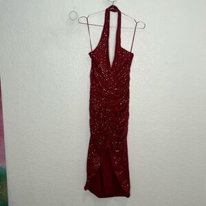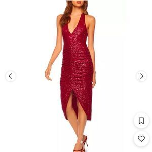 NWT Susana Monaco Sequin V-Neck Halter Dress in Berries Small