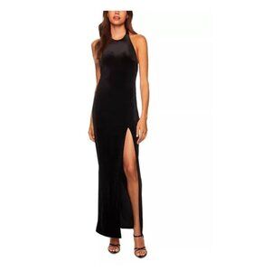 NWT Susana Monaco Velvet Black Halter Open Back Maxi Dress Gown Size small
