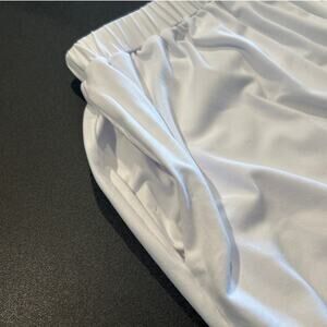 Keywords: Susana Monaco, white joggers, elastic waist, ankle gathers, casual pants, women's joggers, new with tags, medium size, stylish joggers, comfortable pants, designer joggers, fashion pants