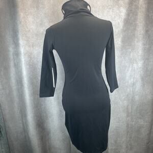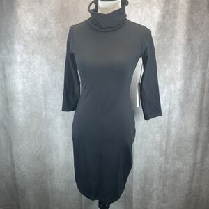 NWT Susana Monaco Woman's Black Dress Sz Small Mock Turtle Neck 3/4 Sleeve Bodycon Mini