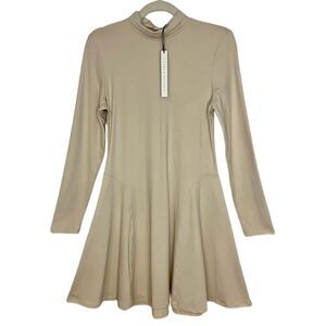 NWT Susana Monaco Mock Long Sleeve Flare Dress in Blanched Almond
