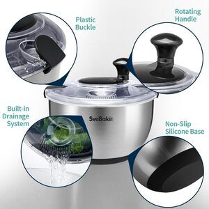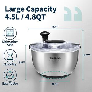 NWT SveBake 4.2 Qt Salad Spinner Stainless Steel Lettuce Dryer BPA-Free