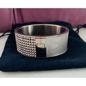 This elegant stainless steel hinged bangle shines in Crystal Mesh and patent calfskin leather. It adds a touch of sophisticated glamour to any outfit. Discontinued Color. I've had this in a box stored away for so long, I never wore it, so perfect time to sell.