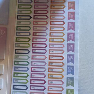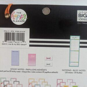 Hard-to-find, new in package, Happy Planner brand 'Sweat, Smile Repeat' 638 piece accessory pack with awesome workout-themed stickers. This item is brand new, featuring fitness stickers, sticky notes in 4 shaped designs (20 pages per set), a 20-page vertical notepad, all of which work with other Happy Planner customizable organizer elements. This uplifting, new with tags Me & My Big Ideas Happy Planner pack is great for organizing on your health and wellness routine, and a perfect choice for focusing on your fitness goals :)
