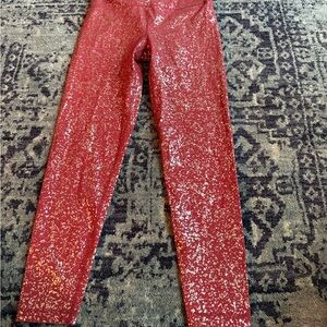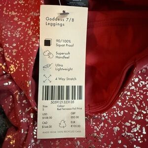 NWT- Sweaty Betty 7/8 Goddess Yoga Leggings Red Terrazzo Disco Foil Print Sz S