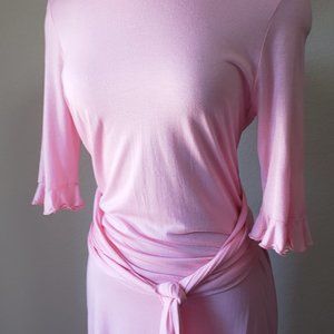 Harvey's - NWT - Boutique designer sweet pink cotton dress with high collar & waist tie. Sexy and clingy and soft cotton with a slit at the lower back. Definitely unique and one of a kind. The 3/4 sleeves have a ruffled edge. Perfect for spring!!!