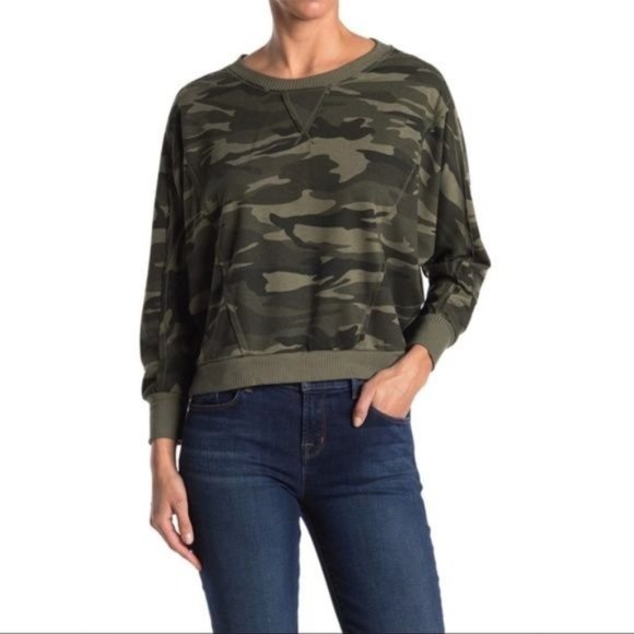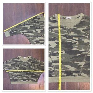 NWT Sweet Romeo Green Camo Exposed Seam Dolman Sleeve Crop Sweatshirt Medium