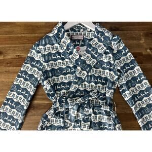 NWT SweetHoney Classic Lounge Robe Blue Cream Fair Isle Sleigh Ride Cozy XS