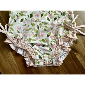 NWT SweetHoney Long Sleeve Rash Guard Santa Cruz Floral White Pink Ruffle Preppy