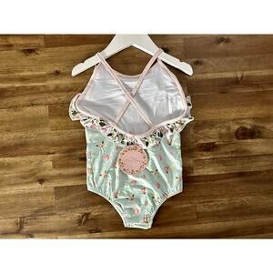 NWT SweetHoney Mary One Piece Swimsuit Santa Cruz Floral Green Pink Ruffle 4T