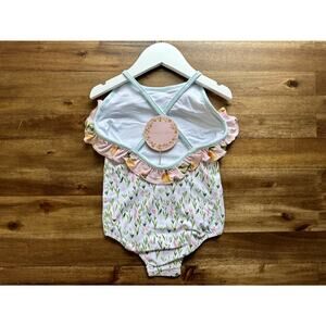 NWT SweetHoney Mary One Piece Swimsuit Savannah Floral White Pink Ruffle Preppy