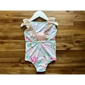 NWT SweetHoney Moxie One Piece Swimsuit Palest Pink Floral Ruffle Preppy 5