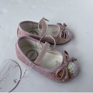New with tags SweetHoney small bow glitter ballet flats in light pink. Sweet special occasion shoes with super sparkly glitter design. Size 5 baby / toddler.