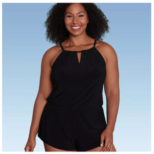 NWT Swim Romper One Piece Swimsuit W/ Pocket Sz XL Aqua Green