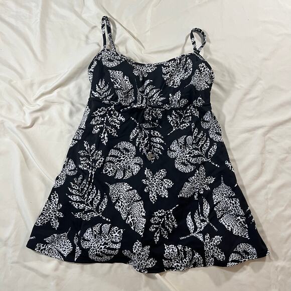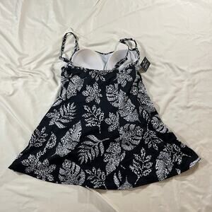 NWT Swim Solutions Black White Palm Print Swim Dress Wmns 12 Resortwear Beach