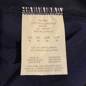 NWT Swim Solutions Modest Swim Suit Dress Thigh Minimizer Blue Floral Size 10 Adjustable straps. One piece. Center front peekaboo. Navy blue floral. Brand new condition. I pack carefully and ship quickly. Have any questions? Please ask. Thank you for looking!