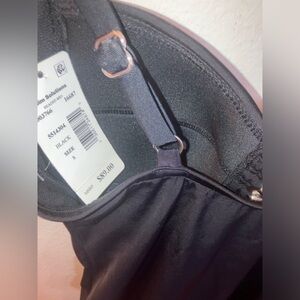NWT Swim Solutions Shirred Tummy-Control One-Piece Swimsuit Black w Gold Bead