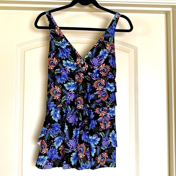 Swim dress floral, black back ground.