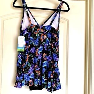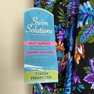NWT- Swim Solutions Swim suit tummy control thigh minimizer Beach Coadtal Sz 10.