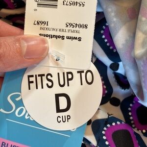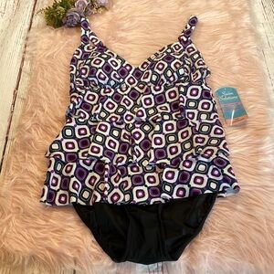 New with tags Swim Solutions Triple Tier fauxkini ruffled one piece geometric swimsuit