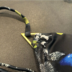 Add a touch of luxury to your swimwear collection with this Swiminista x Christian Lacroix bikini top. Featuring a stunning multicolor butterfly and floral print on a sleek black background, this eco-conscious piece combines designer artistry with sustainable materials. The adjustable triangle cups and straps offer a flattering, comfortable fit.