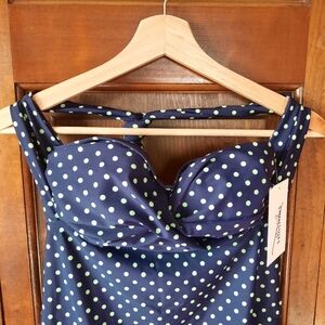 NWT Swimsuits For All Retro Navy Lime Green Polka Dot Twist Halter Top Swimsuit