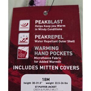 NWT Swiss Tech Toddler Heavyweight Puffer Jacket Size 18M / Purple & Green Multi