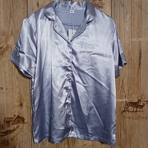 NWT Swomog Lavender Satin Button Down P.j Top Size Medium