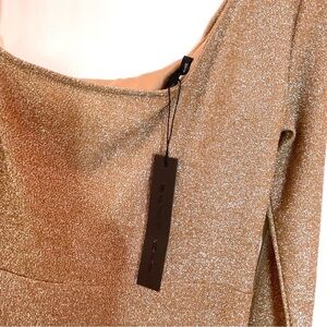 NWT Symphony Bronze Metallic Shimmer One Shoulder Gown W/ Side Split Sz L