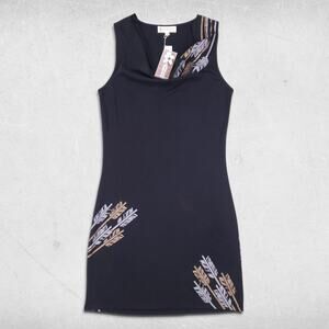 NWT Synergy Shift Dress Size M Black Arrow/Feather Motifs Scoop Neck Knee Length