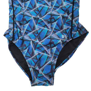 NWT Syrokan Racerback Swimsuit Blue Geometric 34E Athletic One Piece Training