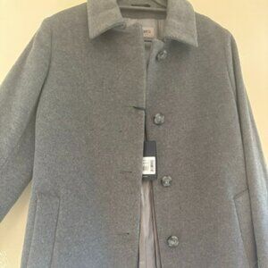 You deserve this luxurious coat! Brand new, grey classic elegant coat with a wool and cashmere blend that will elevate any outfit. I purchased this brand-new to wear to an event that got cancelled (darn) and now it's just sitting in my closet. She's ready to join your wardrobe!