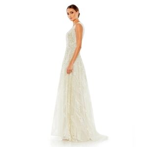 NWT Sz 10 Mac Duggal 20312 Pearl Embroidered Sleeveless A-Line Gown