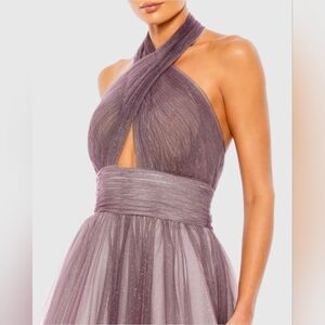 NWT Sz 16 Mac Duggal 20376 Glitter Charcoal Ombre Halter Neck Ballgown