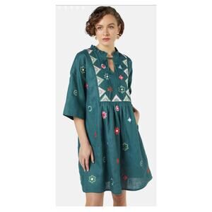 NWT Sz 18 Gorman x Tara Whalley Mirror Green 100% Linen Dress Plus Summer
