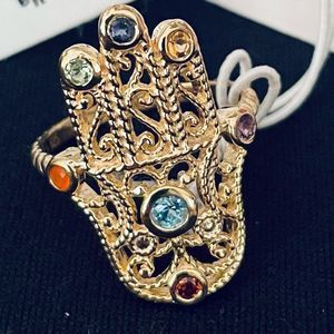 NWT Sz 7 The Seven Chakras 14K Gold Plated Over Sterling silver ring from India