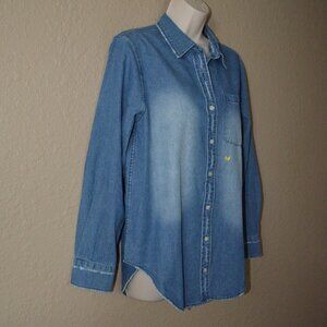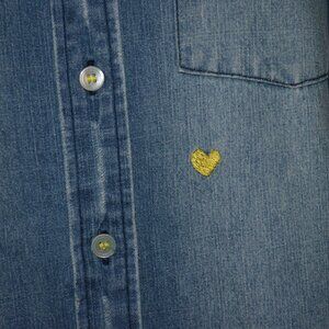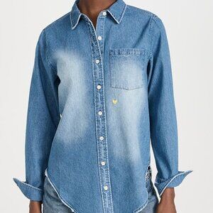 NWT Sz M Kerri Rosenthal Blue Denim Heart Mia Shirt Core Long Sleeve Blouse Top
