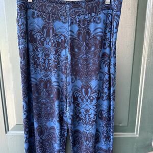 NWT Sz M Susan Graver Printed Liquid Knit Sofia Straight Pants Granite Blue QVC