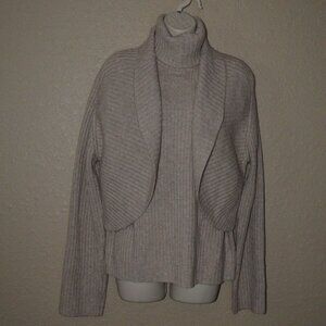 NWT Sz S Barbara Bui Oatmeal Two Piece Ribbed Sleeveless Turtleneck Cardigan Set