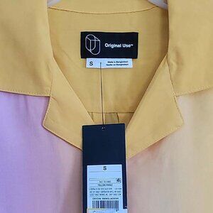 NWT Sz S Tropical Hawaiian Short Sleeve Shirt Yellow Black Pink "Original Use"